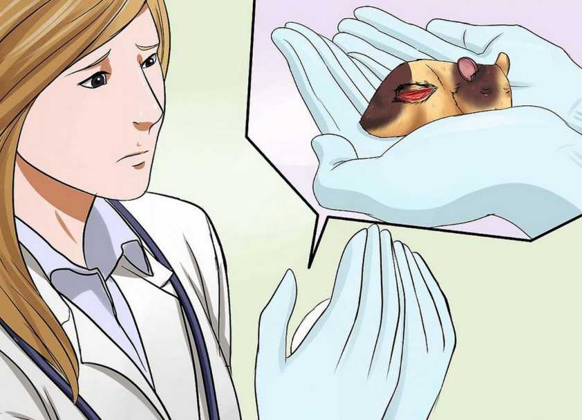 Если нет возможности доставить грызуна к ветеринарному врачу, первая помощь оказывается на дому. Ограничение движений, как в случае обычной травмы. Защитить рану от инфекции почти невозможно, но для этого надо прилагать все усилия. В противном случае возникает гнойное воспаление, гангрена, иногда даже сепсис (заражение крови).