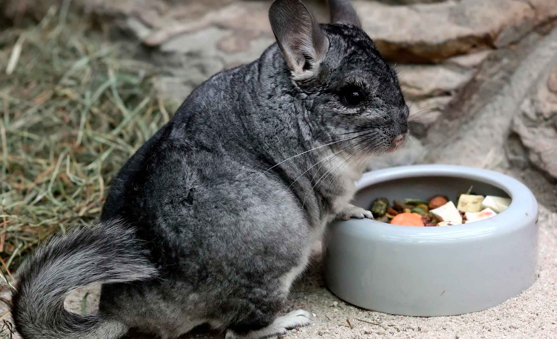 Кормить шиншиллу следует 1 раз в день. Еда и вода всегда должны быть свежими. Воду следует давать фильтрованную или кипяченую. В клетке всегда должен быть специальный камень для стачивания зубов, который можно приобрести в любом зоомагазине.