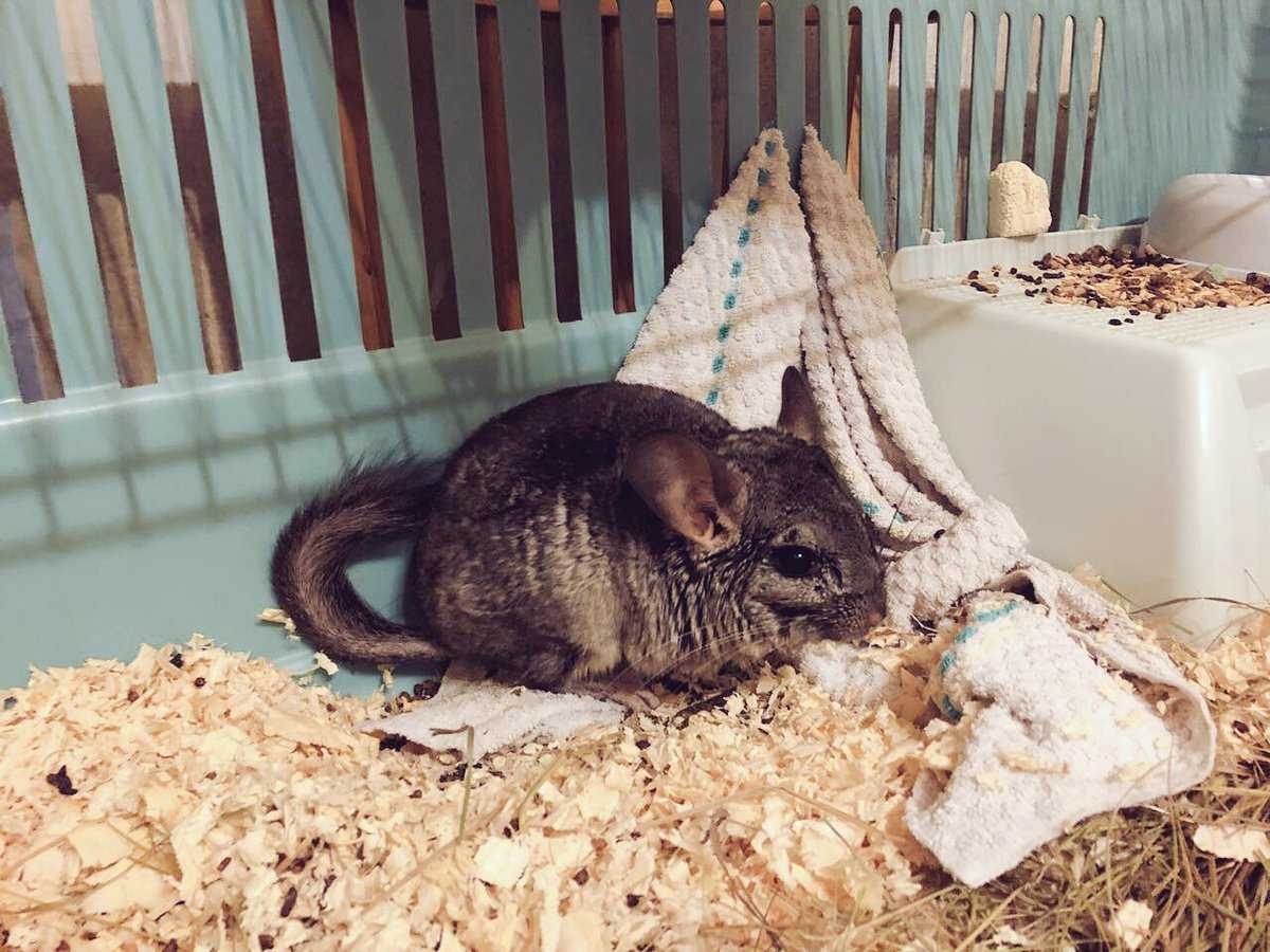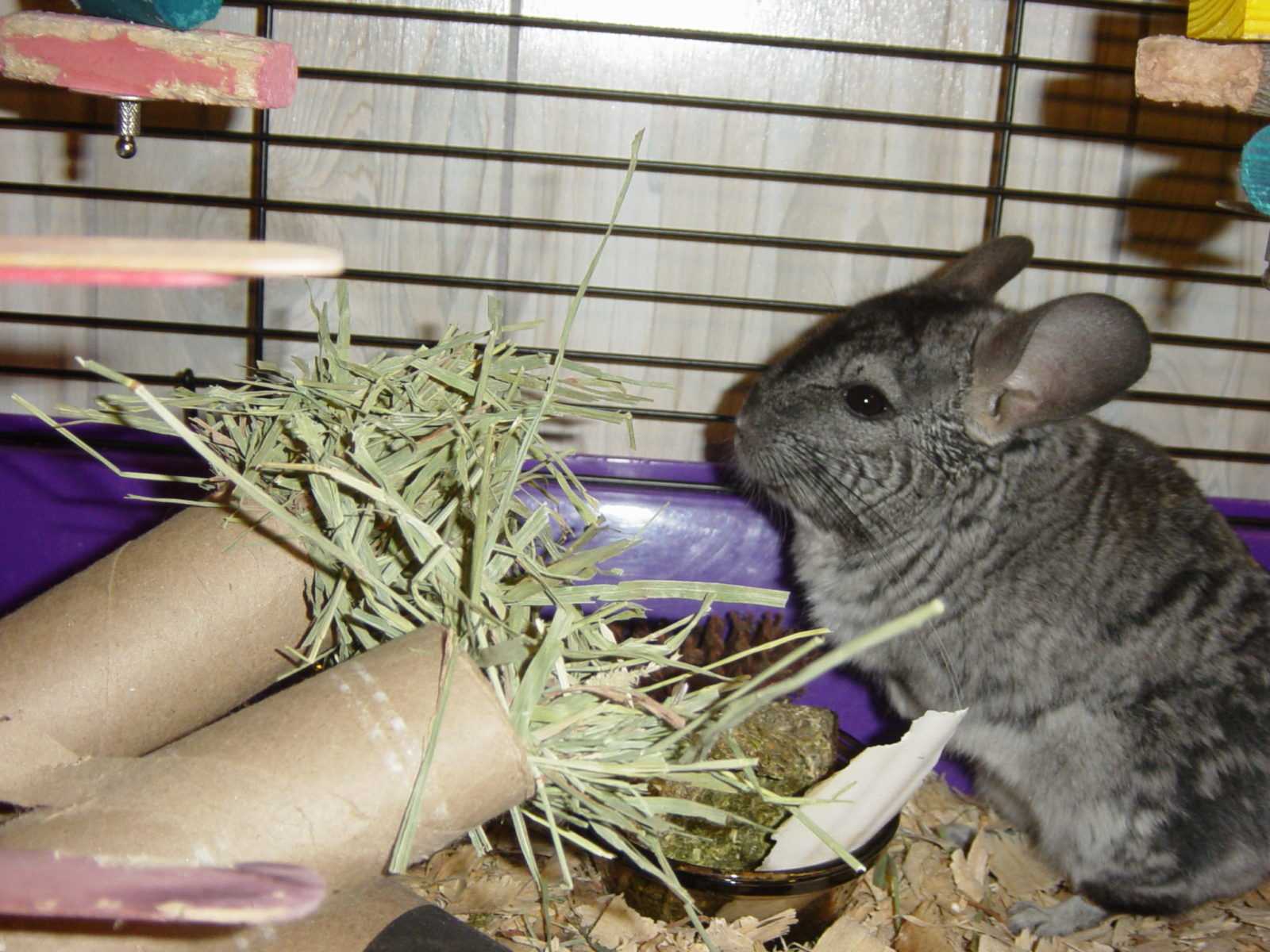 Хлоргексидин может быть дезинфицирующим средством для всей клетки — он хорошо убивает микробов и не имеет запаха, однако для поилок и кормушек его лучше не применять. Некоторые заводчики используют в качестве дезинфицирующего средства и обычное хозяйственное мыло. Протирать поилки и кормушки, а также клетку можно и спиртом. Следить за чистотой клетки необходимо еще и потому, что иногда зверек предпочитает есть на площадке для отдыха или даже в домике. Многие владельцы замечали, как шиншилла берет кусочек корма и бежит в укрытие.