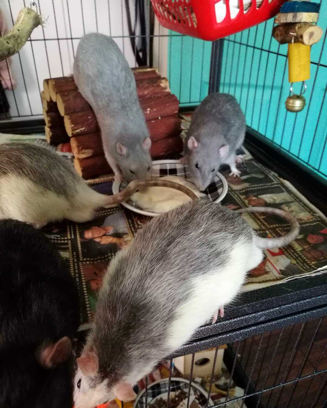 Пространство клетки будет поделено на зону отдыха и столовую. Также крысы будут устраивать возню и играть, особенно если они редко выходят на прогулки.