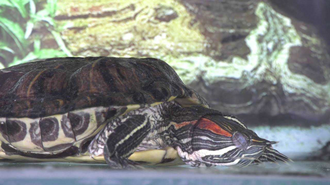 - Понизьте уровень воды. Черепашка зарывается в грунт, где может долго спать без подъемов на поверхность. Получение кислорода осуществляется специальными мембранами в клоаке и ротовой полости.