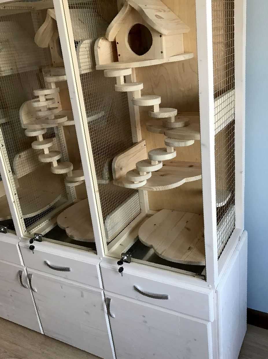 Витрина должна быть изготовлена из прочных и экологически безопасных материалов, поскольку грызуну наверняка захочется попробовать ее на зуб.